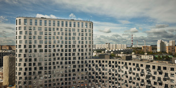 С помощью мозаичного фасада и элегантно закругленных форм зданий Московское конструкторское бюро «Цимайло Ляшенко и партнеры» четко отделили комплекс от печальных районов города, желая избежать при этом эффекта «гигантского серого мавзолея».