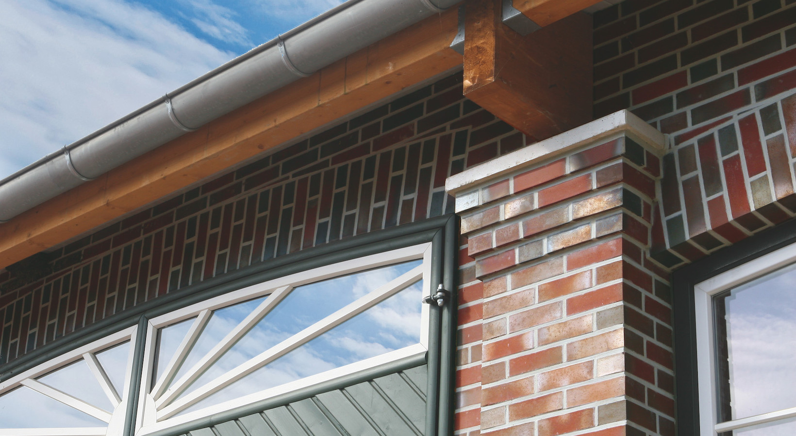 Ponadto cegła klinkierowa GREETSIEL wyróżnia się niespotykanymi, pięknymi odcieniami błękitu, który sprawdza się w stosowanym przez architekta zabiegu - duże powierzchnie ścian z klinkieru ozdabiane są oryginalnymi detalami z piaskowca. Aby całość dobrze ze sobą współgrała, zdecydowano się na piaskowiec w jasnym odcieniu koloru żółtego. Na pierwszy rzut oka ściany budynków wydają się nieco niezwykłe z ich uskokami, narożnikami, nadprożami, kolumnami i innymi elementami ozdobnymi. Część z nich jest wynikiem samej konstrukcji budynku. Atrakcyjna fasada kryje ogromne stalowe elementy i betonowe podpory z laminowanymi belkami, które są zmyślnie ukryte właśnie przez te niecodzienne zabiegi architektoniczne.