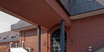 Зелень отлично сочетается с красным цветом фасада. Он был сделан из гладкого клинкерного кирпича Röben Melbourne красного цвета. – Мы решили приобрести кирпич этой марки прежде всего потому, что Röben был единственным производителем клинкера, который пообещал нам особую деталь - вуссуары - из точно такого же материала и в том же цвете, что и фасадный кирпич, - говорит архитектор Рышард Соболевски. – Это было очень важно для нас, потому что полукруглые формы являются важным элементом фасада. Специально подготовленные вуссуары для нужд этого проекта мы использовали на арках аркад, покрывающих около трех метров ширины ворот и входа. Всего их было около 1600 штук, - добавляет он. Также был обожжен кирпич в специальном формате, чего нет в регулярном предложении фирмы. Заводы фирмы Röben произвели для этого проекта более 170 000 кирпичей размером 250 x 65 x 120 мм. Использование этого материала позволило новому зданию промежуточного озонирования и угольной фильтрации идеально сочетаться с историческими зданиями, выполненными из облицовки из красного кирпича, характерной для индустриализма 19-го века.